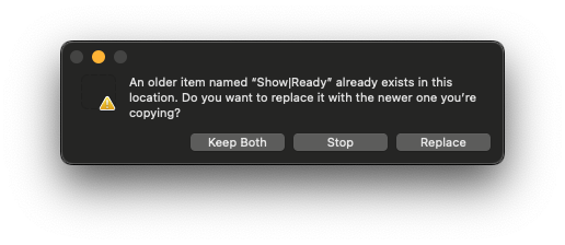 If you have already downloaded Show|Ready previously, you may receive a notification similar to the one below. You will click “Replace” to overwrite the old version.
